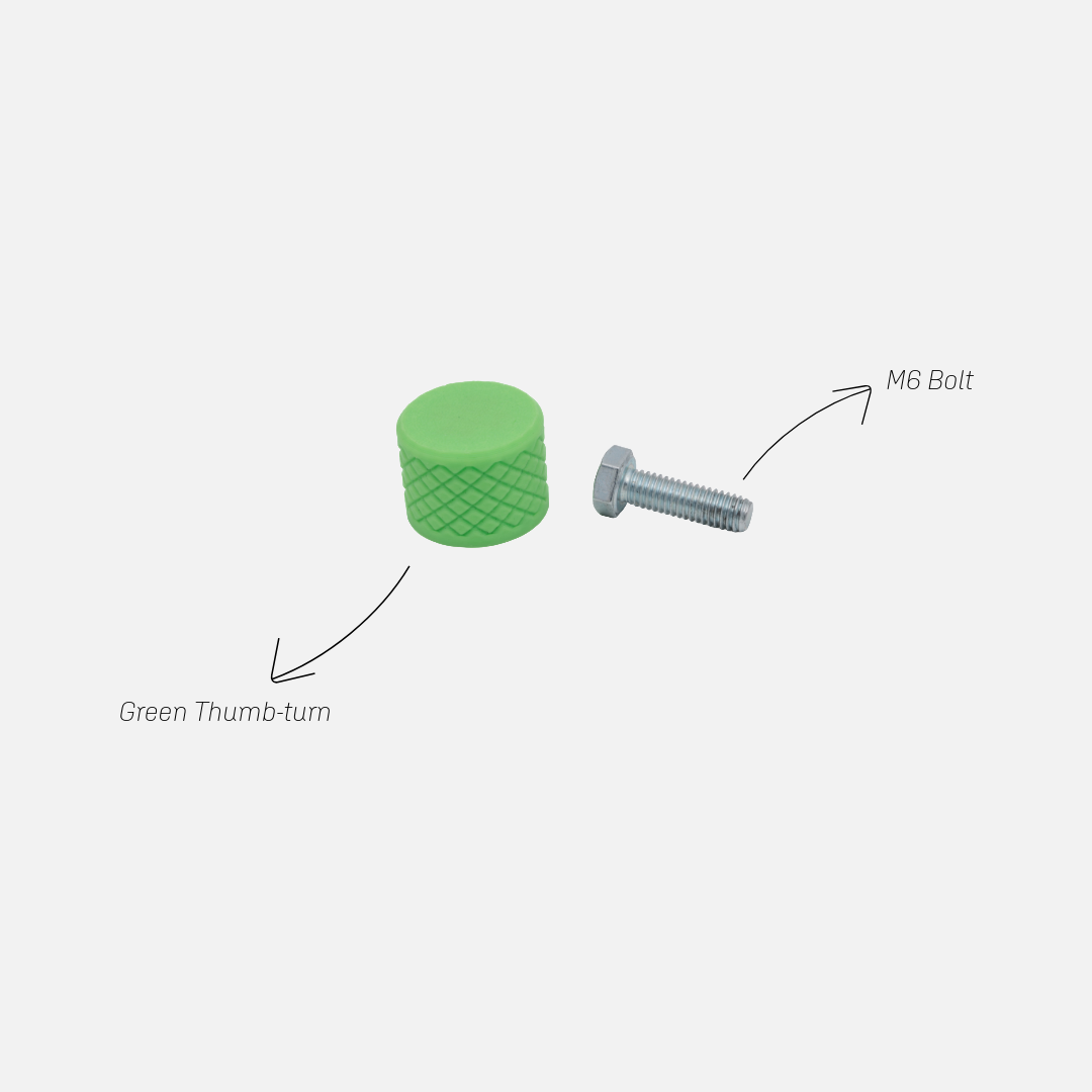 - Use your existing M6 bolt and thumb turn