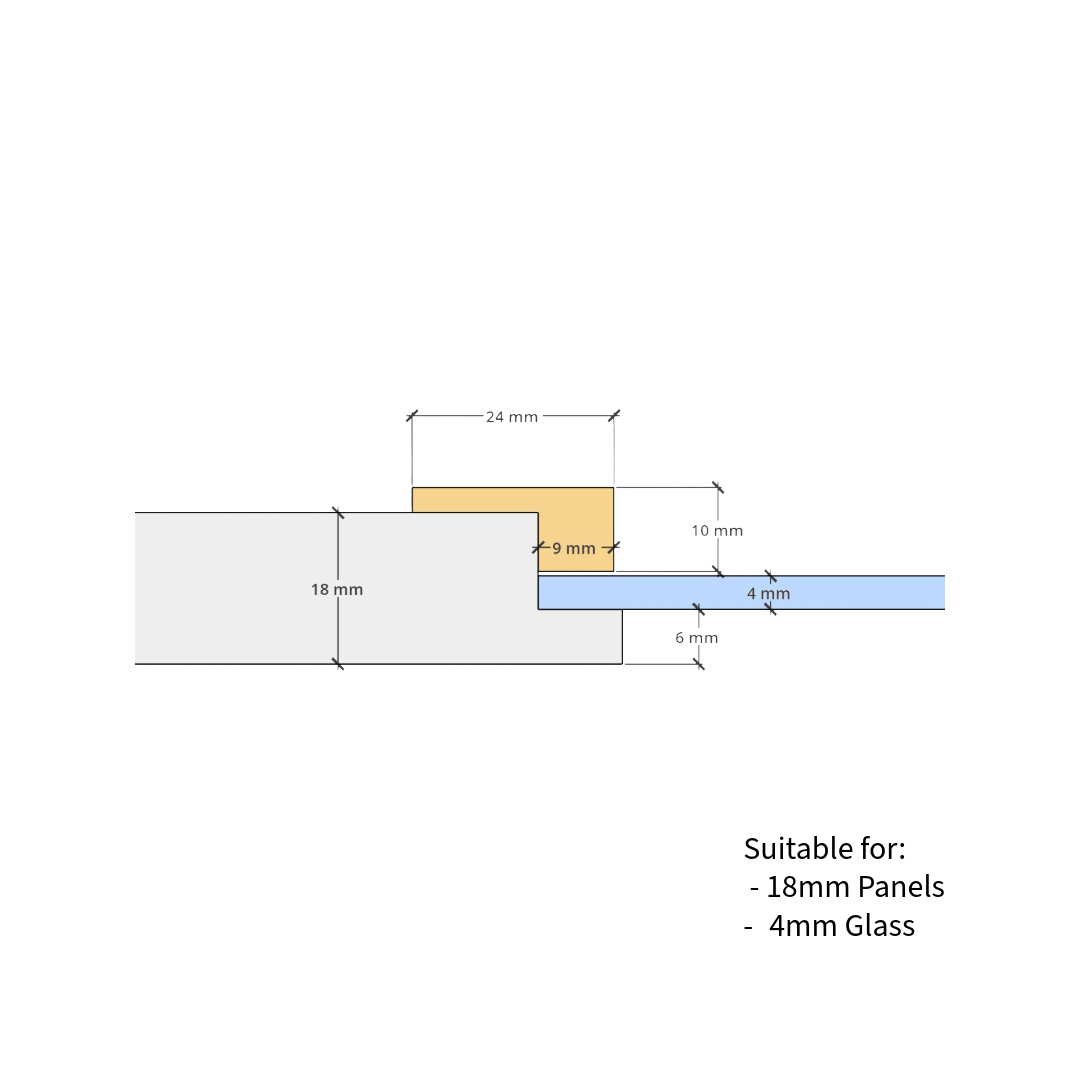 - Designed for 18mm panels rebated to leave 6mm from the front edge